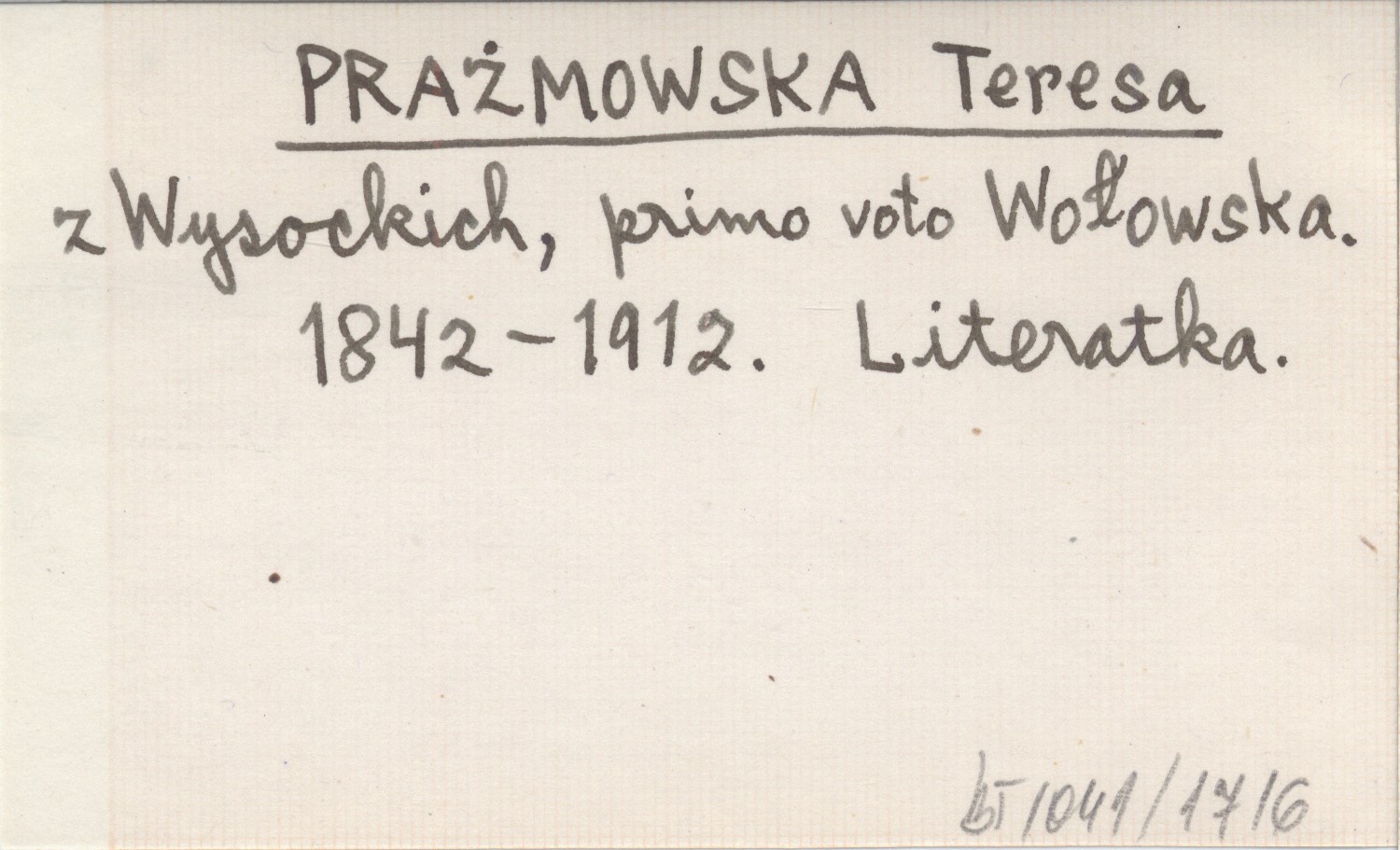 Z Wysockich, primo voto Wołowska. 1842-1912. Literatka.