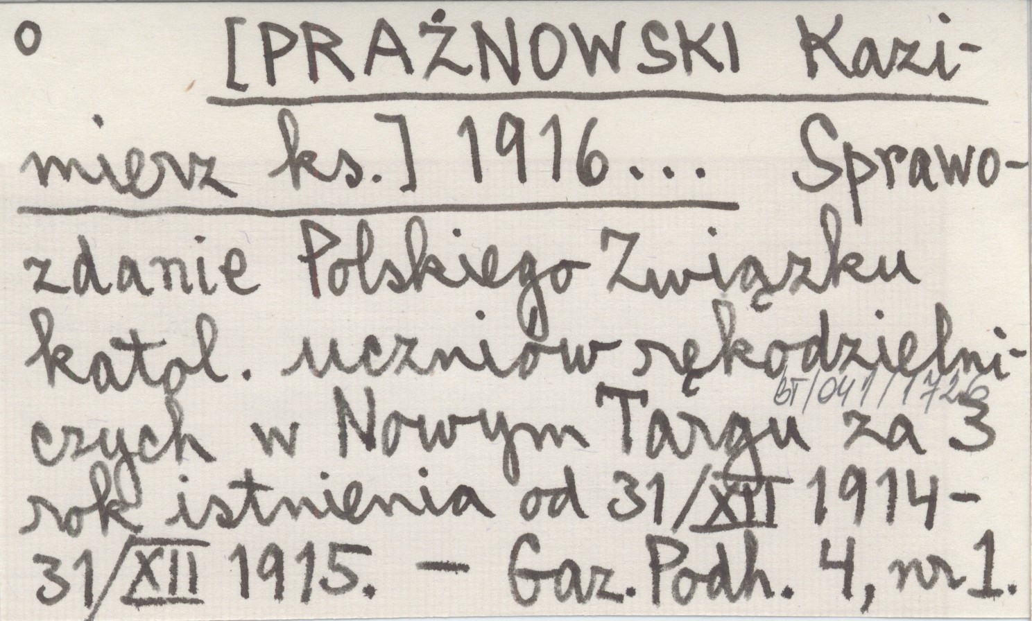 [PRAŻNOWSKI Kazimierz ks.] 1916... Sprawozdanie Polskiego Związku katol. uczniów rękodzielniczych w Nowym Targu za 3 rok istnienia od 31/XII 1914-31/XII 1915.