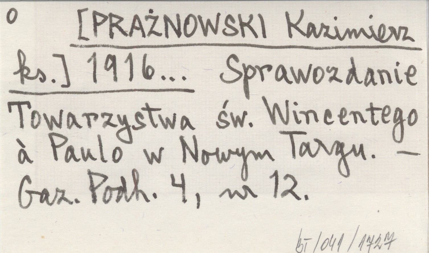[PRAŻNOWSKI Kazimierz ks.] 1916... Sprawozdanie Towarzystwa św. Wincentego á Paulo w Nowym Targu.