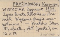 PRAŻMOWSKI Kazimierz WIERCIAK, Zygmunt. ; 1939 Życie Brata Alberta w obrazach.