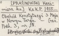 Ks. K. P. [PRAŻNOWSKI Kazimierz ks.] 1915... Obchód Konstytucyi 3 Maja w Nowym Targu.
