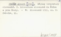 PRAŽÁK Albert [1911] Dějiny literatury slovenské. I. Literatura slovenská do Štúra a jeho školy.