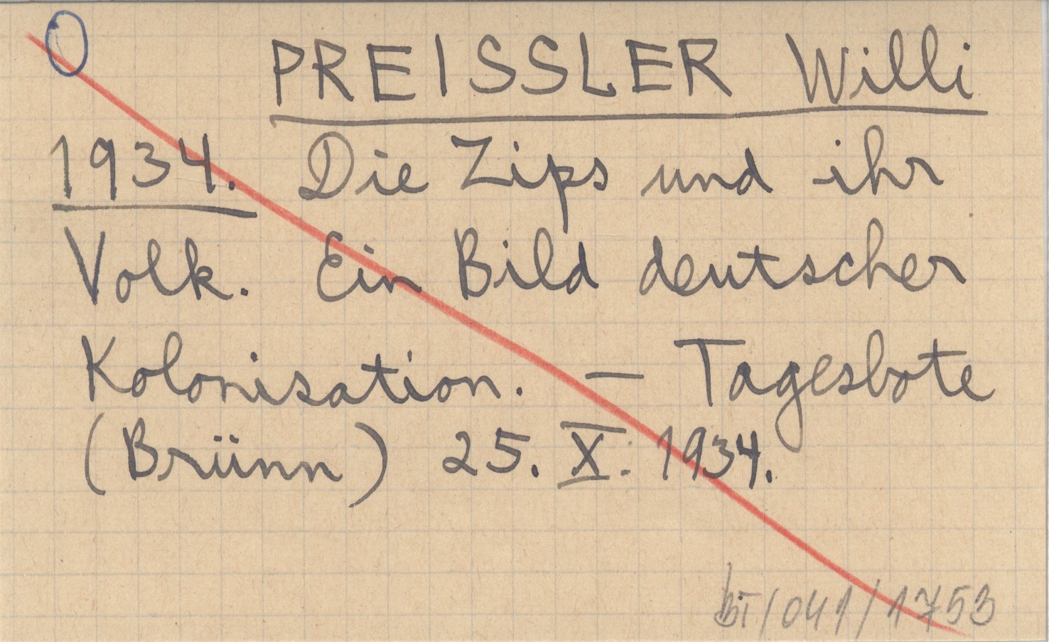 PREISSLER Willi 1934 Die Zips und ihr Volk. Ein Bild deutscher Kolonisation.