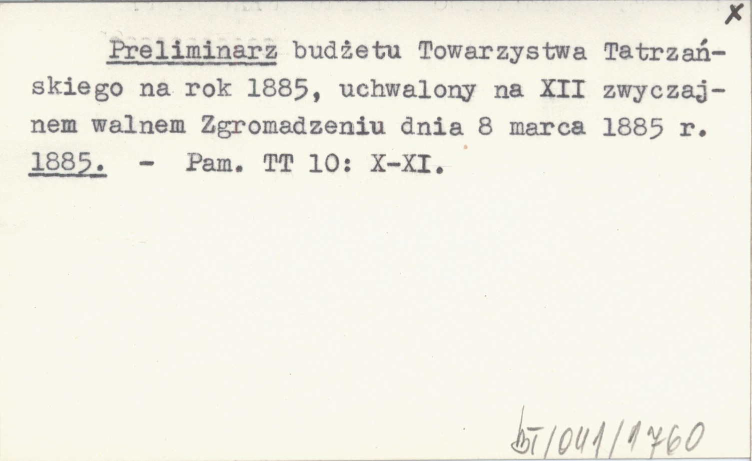 Preliminarz budżetu Towarzystwa Tatrzańskiego na rok 1885, uchwalony na XII zwyczajnem walnem Zgromadzeniu dnia 8 marca 1885 r. 1885