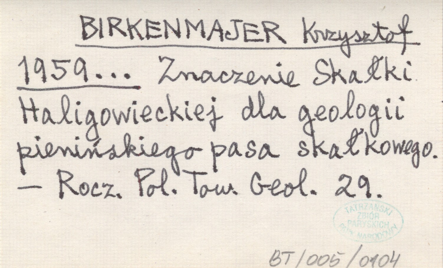 BIRKENMAJER Krzysztof 1959... Znaczenie Skałki Haligowieckiej dla geologii pienińskiego pasa skałkowego.