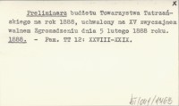 Preliminarz budżetu Towarzystwa Tatrzańskiego na rok 1888, uchwalony na XV zwyczajnem walnem Zgromadzeniu dnia 5 lutego 1888 r. 1888