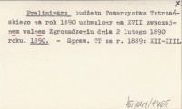 Preliminarz budżetu Towarzystwa Tatrzańskiego na rok 1890 uchwalony na XVII zwyczajnem walnem Zgromadzeniu dnia 2 lutego 1890 roku. 1890