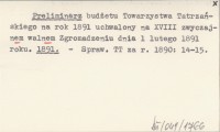Preliminarz budżetu Towarzystwa Tatrzańskiego na rok 1891 uchwalony na XVIII zwyczajnem walnem Zgromadzeniu dnia 1 lutego 1891 roku. 1891