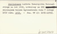 Preliminarz budżetu Towarzystwa Tatrzańskiego na rok 1892 uchwalony na XIX zwyczajnem walnem Zgromadzeniu dnia 7 lutego 1892 roku. 1892
