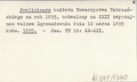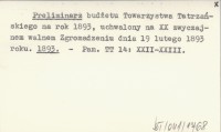 Preliminarz budżetu Towarzystwa Tatrzańskiego na rok 1895, uchwalony na XXII zwyczajnem walnem Zgromadzeniu dnia 10 marca 1895 roku. 1895