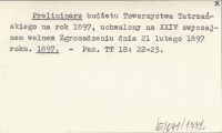 Preliminarz budżetu Towarzystwa Tatrzańskiego na rok 1897, uchwalony na XXIV zwyczajnem walnem Zgromadzeniu dnia 21 lutego 1897 roku. 1897