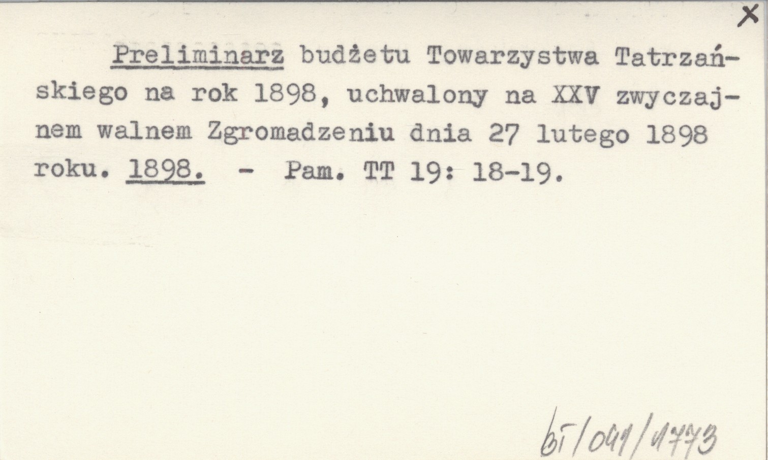 Preliminarz budżetu Towarzystwa Tatrzańskiego na rok 1898, uchwalony na XXV zwyczajnem walnem Zgromadzeniu dnia 27 lutego 1898 roku. 1898