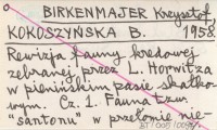 BIRKENMAJER Krzysztof KOKOSZYŃSKA, B. ; 1958 Rewizja fauny kredowej zebranej przez L. Horwitza w pienińskim pasie skałkowym. Cz. 1. Fauna tzw. "santonu" w przełomie niedzickim koło Czorsztyna.