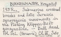 BIRKENMAJER Krzysztof 1958... Submarine erosional breaks and late Jurassic synorogenic movements in the Pieniny Klipen-Belt geosyncline.