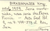BIRKENMAJER Krzysztof 1959 Seria czertezicka, nowa seria skałkowa Pienin.