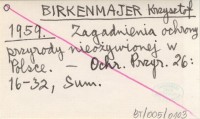 BIRKENMAJER Krzysztof 1959 Zagadnienia ochrony przyrody nieożywionej w Polsce.