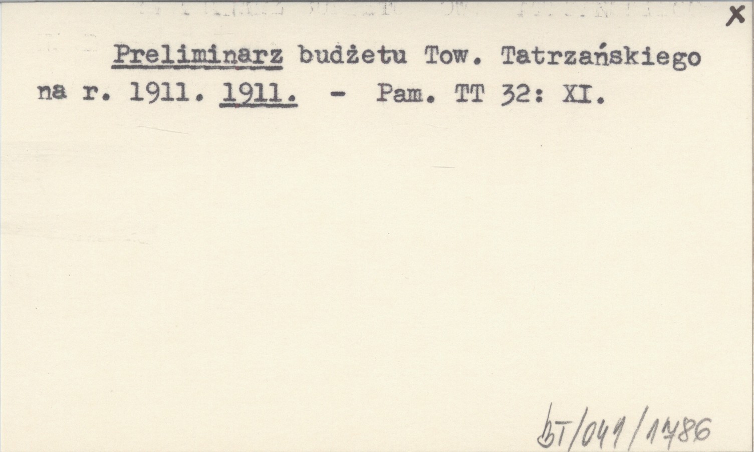 Preliminarz budżetu Tow. Tatrzańskiego na r. 1911. 1911