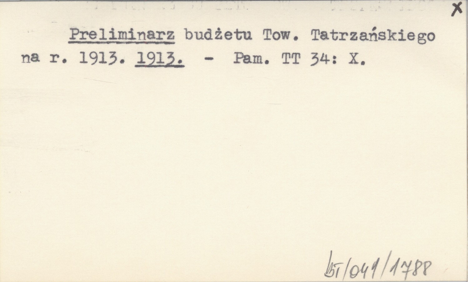 Preliminarz budżetu Tow. Tatrzańskiego na r. 1913. 1913