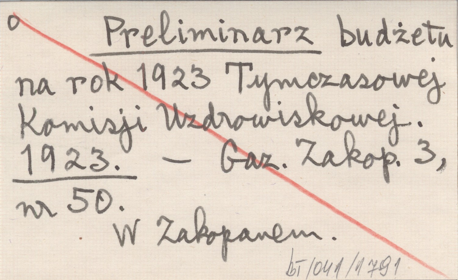 Preliminarz budżetu na rok 1923 Tymczasowej Komisji Uzdrowiskowej. 1923