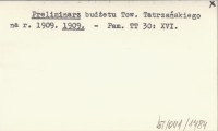 Preliminarz budżetu Tow. Tatrzańskiego na r. 1909. 1909
