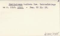 Preliminarz budżetu Tow. Tatrzańskiego na r. 1910. 1910
