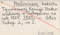 Preliminarz budżetu Komisji klimatycznej w Zakopanem na rok 1922, uchwalony na posiedzeniu dnia 24 marca 1922. 1922