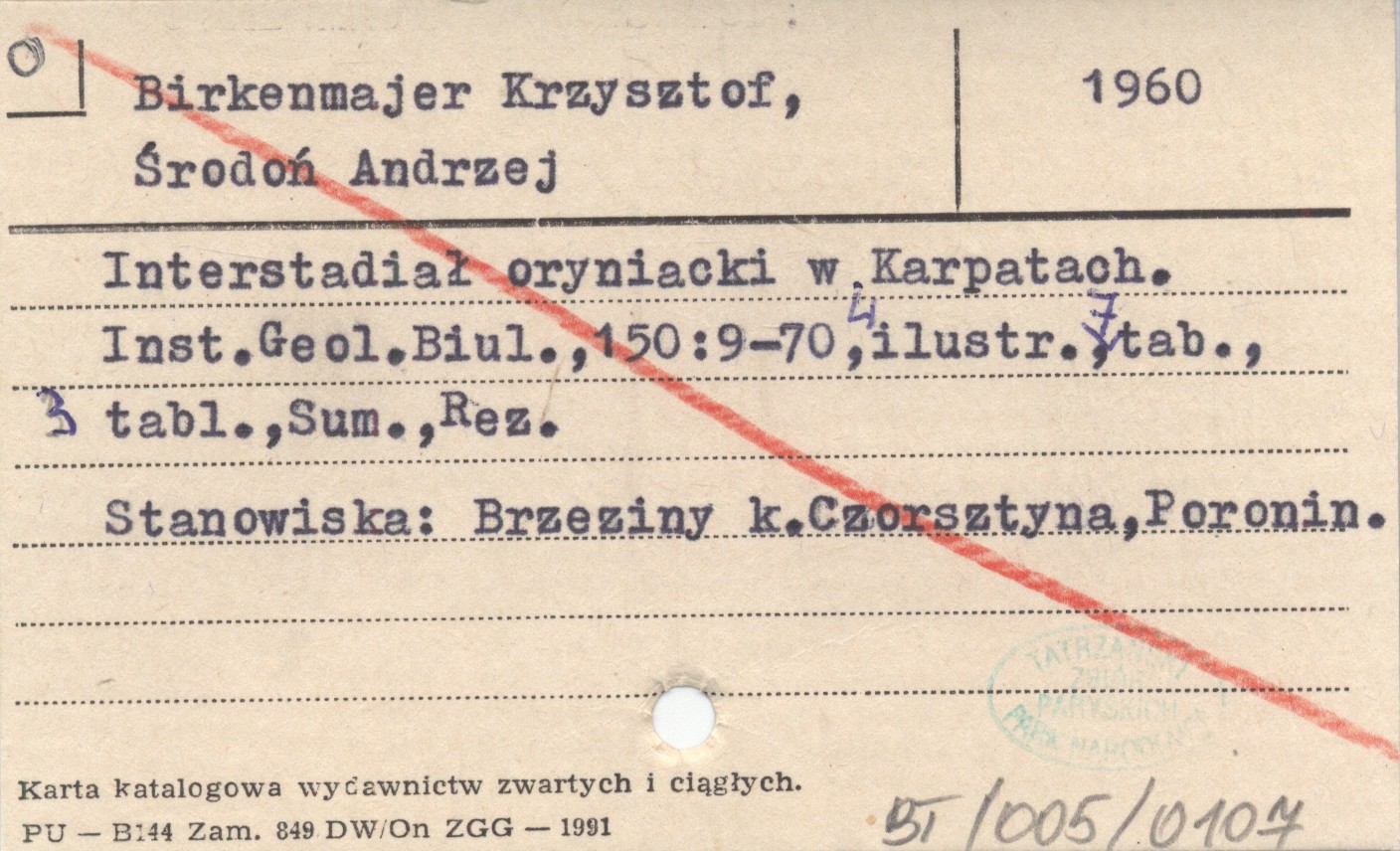 BIRKENMAJER Krzysztof ŚRODOŃ, Andrzej. ; 1960 Interstadiał oryniacki w Karpatach.