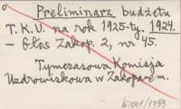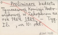 Preliminarz budżetu Tymczasowej Komisji Uzdrowiskowej na rok 1926-ty, uchwalony w dniach 28 listopada r. 1926, zatwierdzony przez Województwo Krakowskie dnia 3 marca r. 1926 l.Z.P.2030 ex 1926. 1926