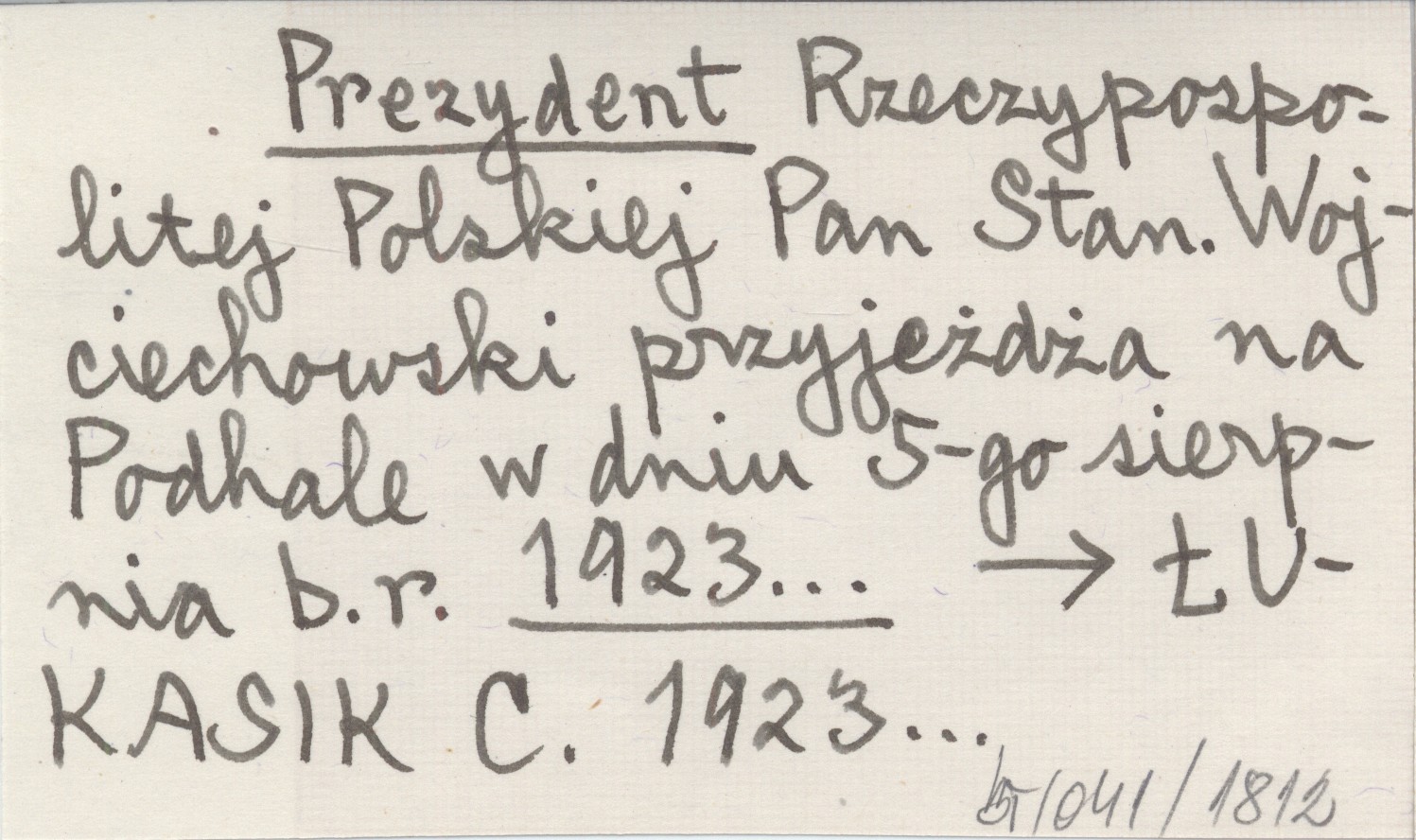 Prezydent Rzeczypospolitej Polskiej Pan Stan. Wojciechowski przyjeżdża na Podhale w dniu 5-go sierpnia b.r. 1923...