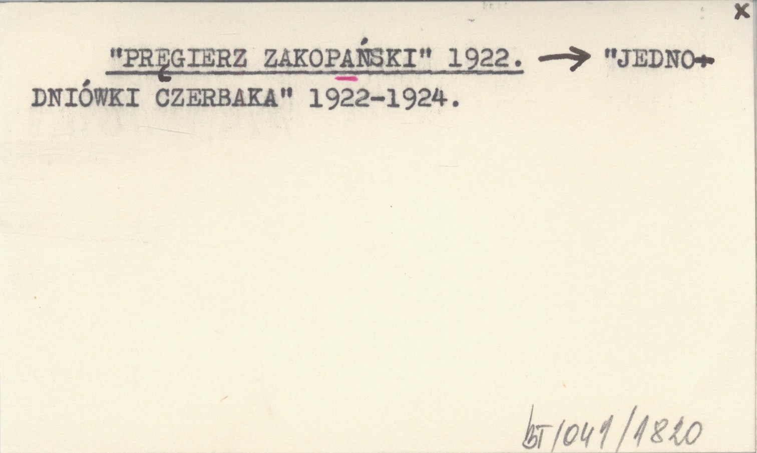 "JEDNODNIÓWKI CZERBAKA" 1922-1924