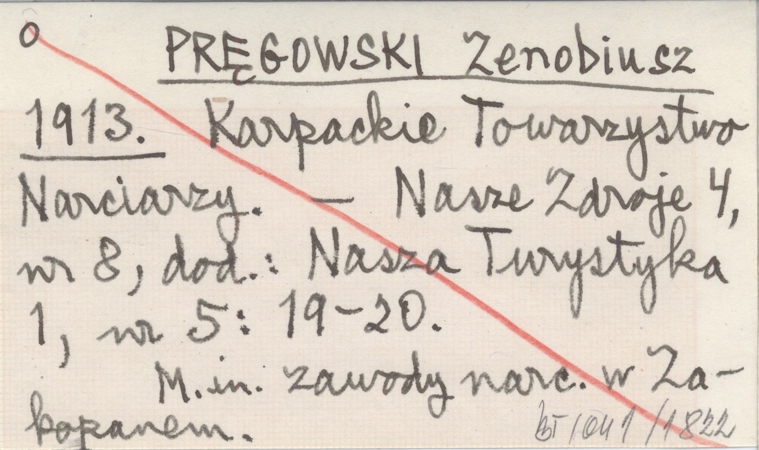 PRĘGOWSKI Zenobiusz 1913 Karpackie Towarzystwo Narciarzy.