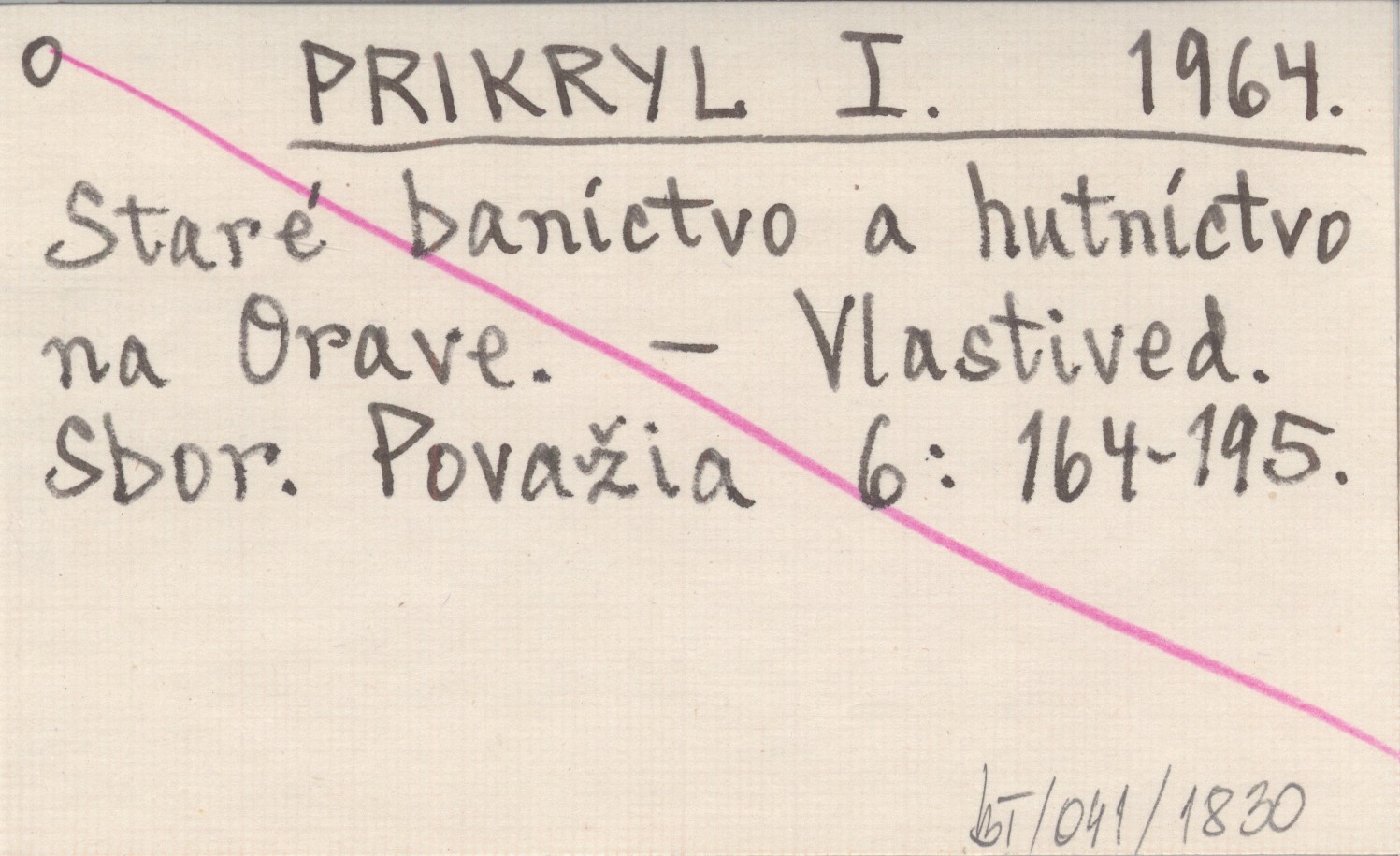 PRIKRYL I. 1964 Staré baníctvo a hutníctvo na Orave.