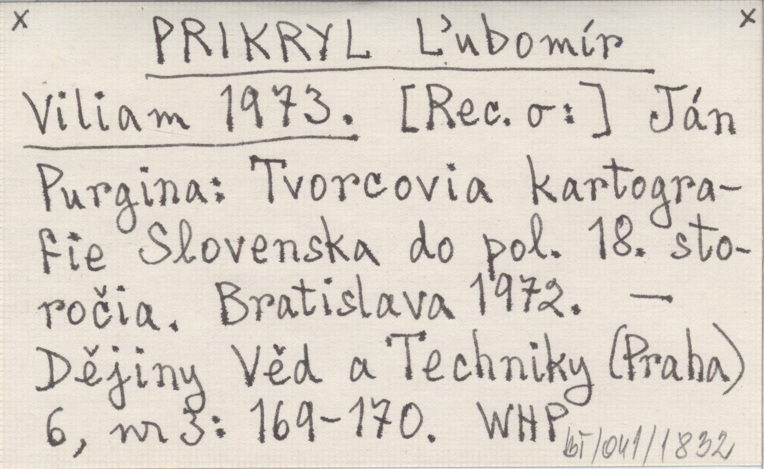 PRIKRYL Ľubomír Viliam 1973 [Rec. o:] Ján Purgina: Tvorcovia kartografie Slovenska do pol. 18. storočia. Bratislava 1972.