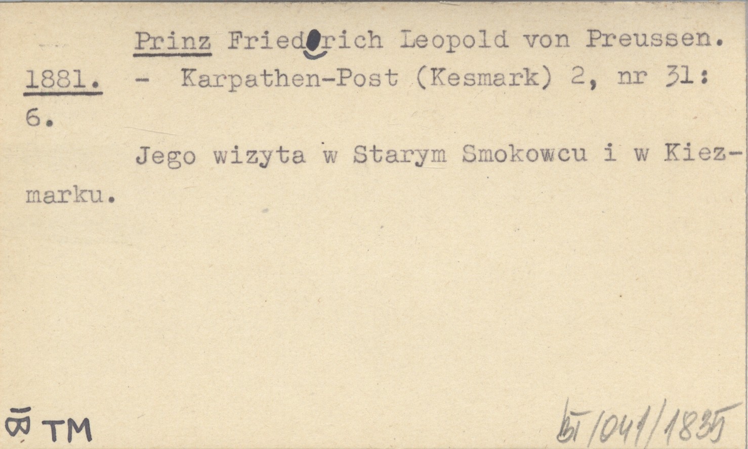 Karpathen-Post (Kesmark) , 2, nr 31: 6. Jego wizyta w Starym Smokowcu i w Kiezmarku.