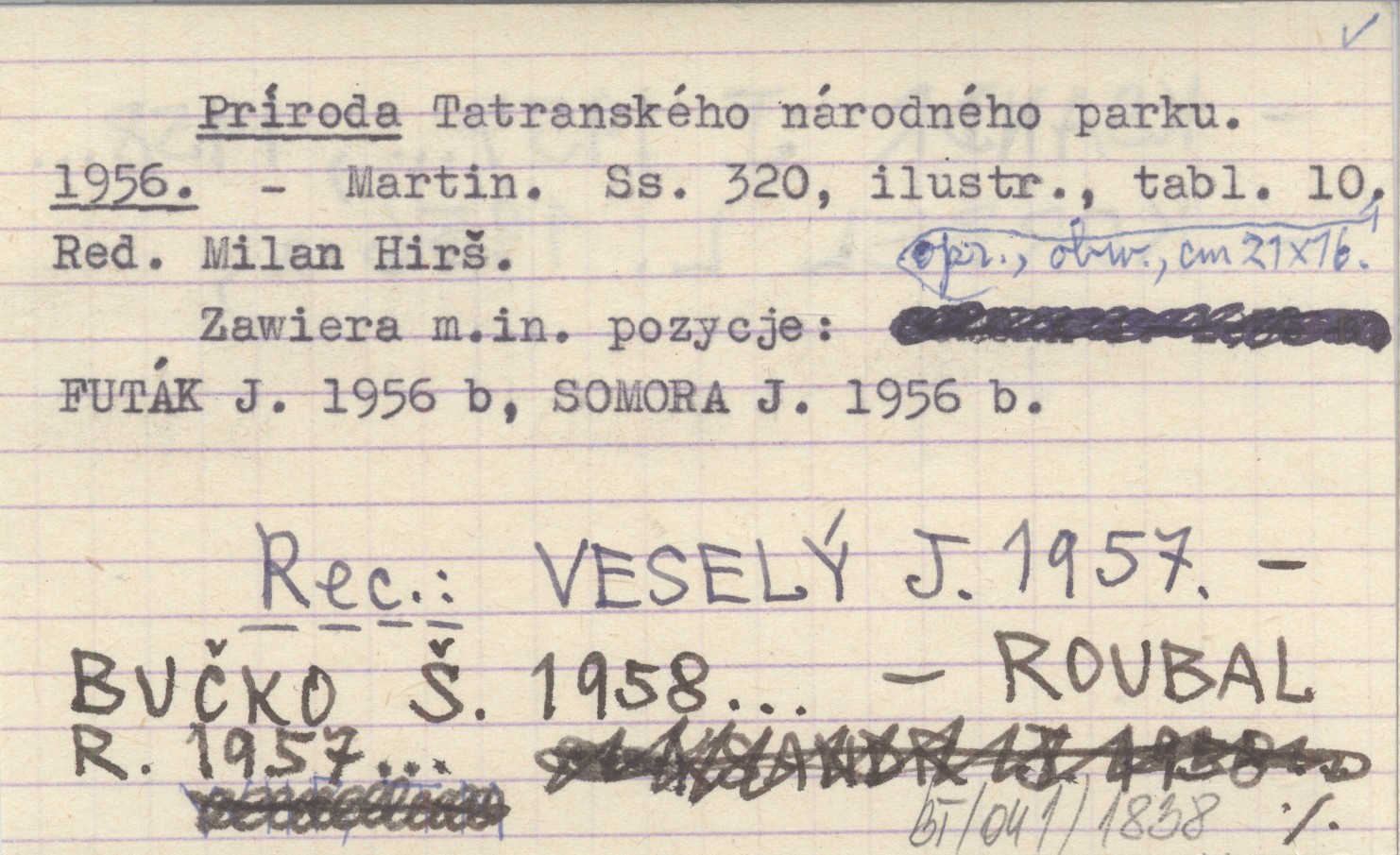 Martin , 320 s., il., 10 k., opr., obw., 21x16 cm. Zawiera m. in. pozycje: FUTÁK J. 1956 b, SOMORA J. 1956 b. REC: VESELÝ J. 1957 ; BUČKO Š. 1958... ; ROUBAL R. 1957... ; KSANDR J. 1957..., 1958... ; KORBEL L. 1956 a ;