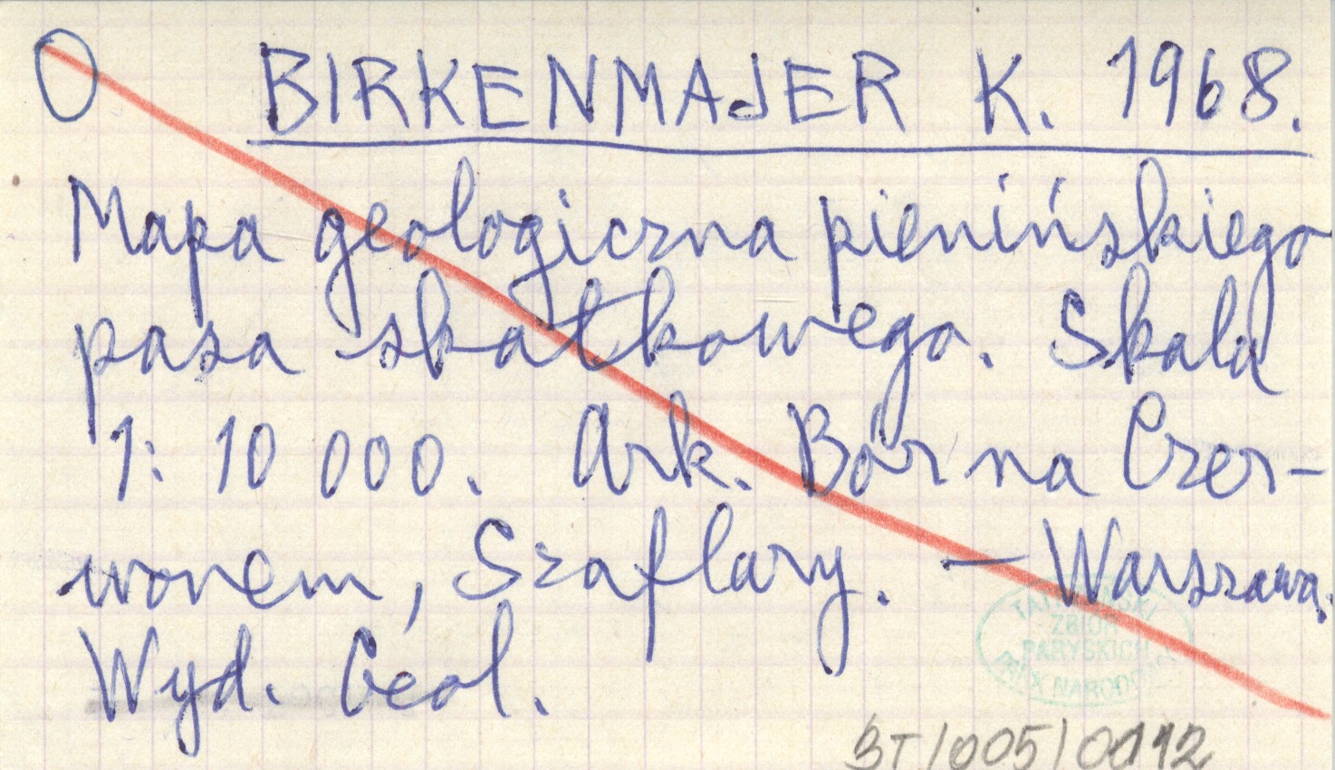 BIRKENMAJER K. 1968 Mapa geologiczna pienińskiego pasa skałkowego. Skala 1:10 000. Ark. Bár na Czerwonem, Szaflary.