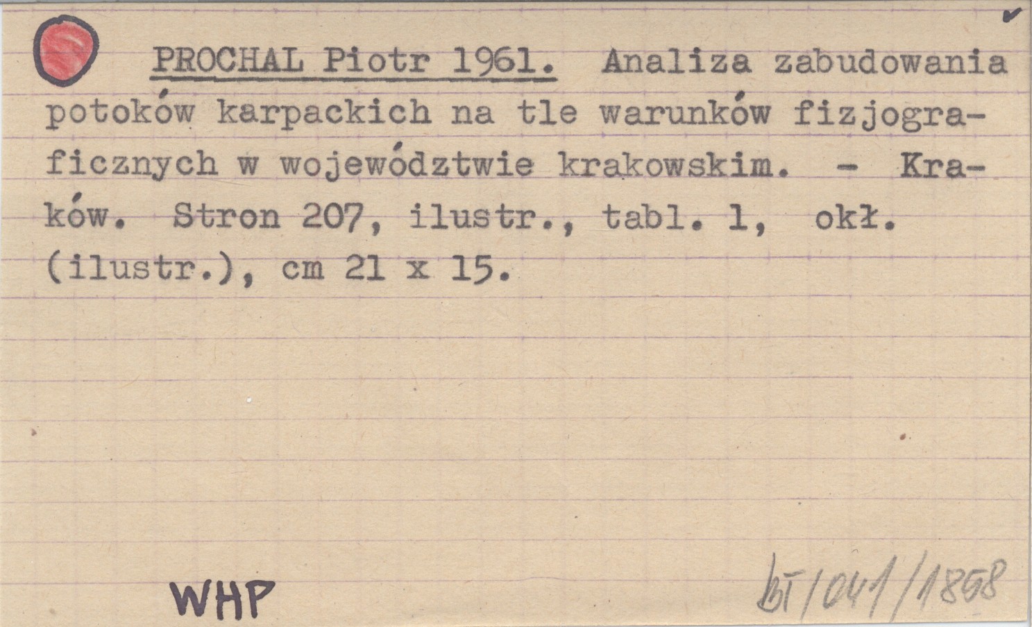 PROCHAL Piotr 1961 Analiza zabudowania potoków karpackich na tle warunków fizjograficznych w województwie krakowskim.
