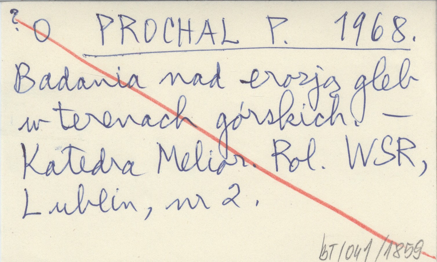 PROCHAL P. 1968 Badania nad erozją gleb w terenach górskich.