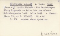 A. P-ska [PROCHASKA Antoni] 1899 [Rec. z:] Arndt Richard: Die Beziehungen König Sigmunds zu Polen bis zum Ofener Schiedsspruche 1412. Halle 1897.