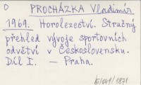 PROCHÁZKA Vladimír 1969 Horolezectví. Stručný přehled vývoje sportovních odvětví v Československu.