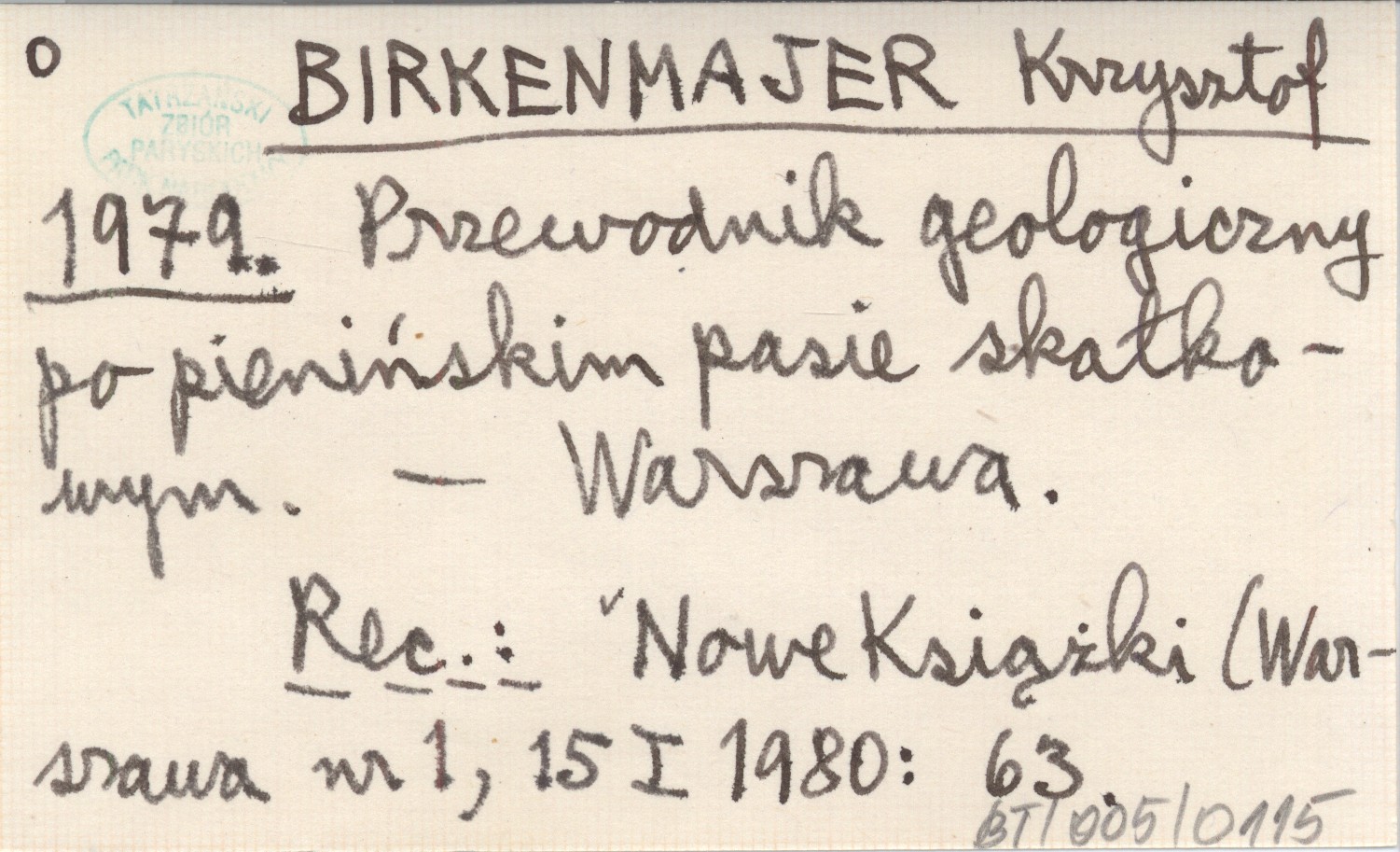 BIRKENMAJER Krzysztof 1979 Przewodnik geologiczny po pienińskim pasie skałkowym.