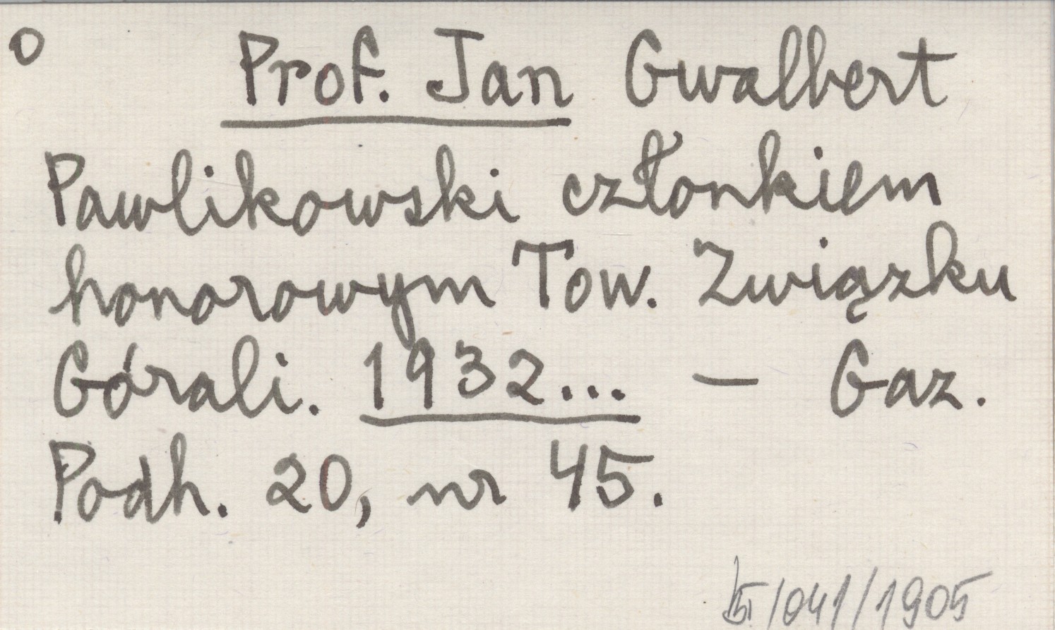 Prof. Jan Gwalbert Pawlikowski członkiem honorowym Tow. Związku Górali. 1932...
