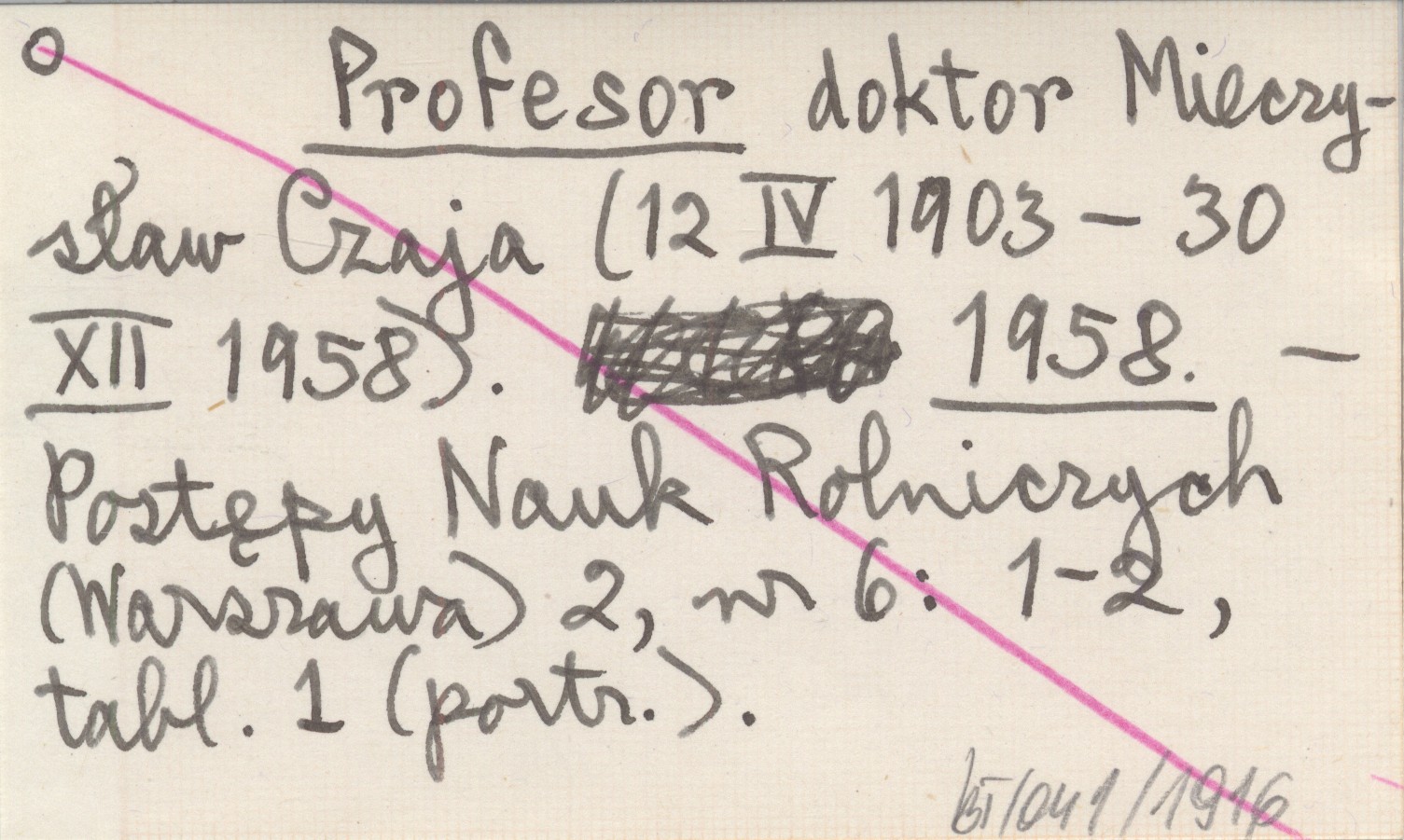 Profesor doktor Mieczysław Czaja (12 IV 1903-30 XII 1958). 1958