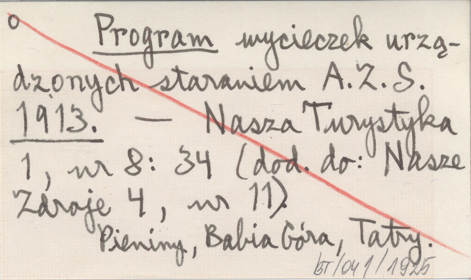 Nasza Turystyka, 1, nr 8: 34, dod. do: Nasze Zdroje 4, nr 11. Pieniny, Babia Góra, Tatry.