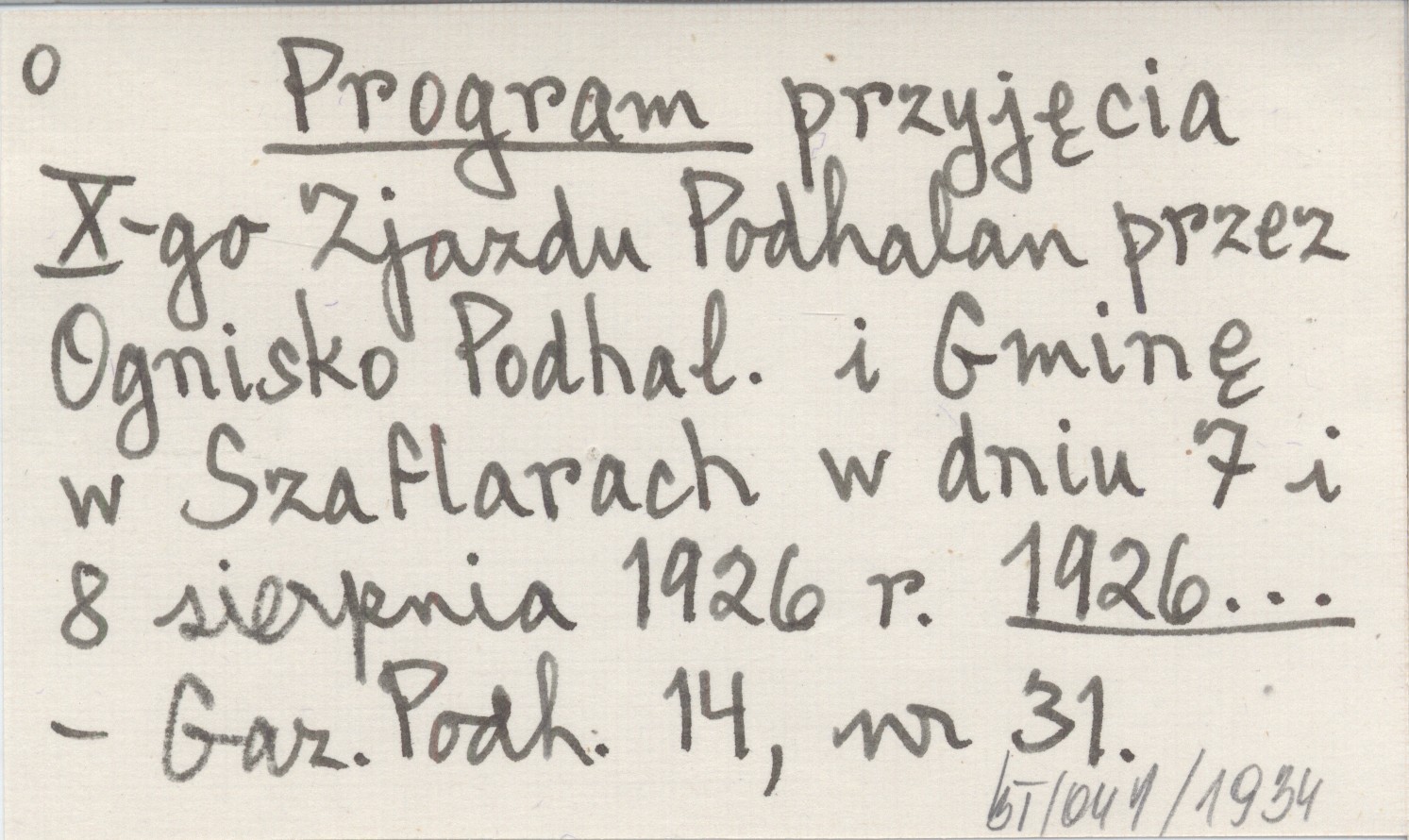Program przyjęcia X-go Zjazdu Podhalan przez Ognisko Podhal. i Gminę w Szaflarach w dniu 7 i 8 sierpnia 1926 r. 1926...