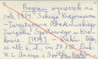 Program wycieczek na rok 1914. Sekcya Krajoznawczo-Turystyczna Akademickiego Związku Sportowego w Krakowie. [1914]