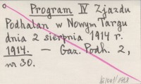 Program IV Zjazdu Podhalan w Nowym Targu dnia 2 sierpnia 1914 r. 1914