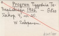 Program Tygodnia Tatrzańskiego. 1926