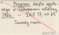 Program święta sportowego w Zakopanem ustalony. 1926