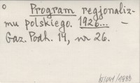 Program regjonalizmu polskiego. 1926...